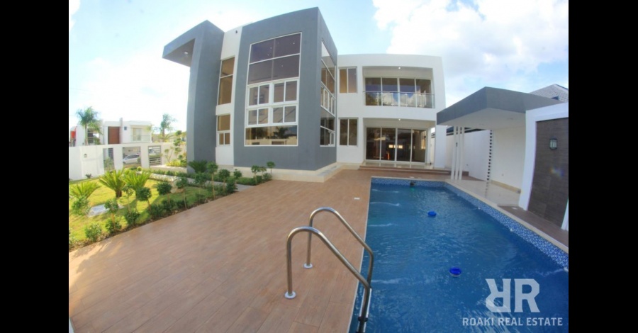 casa de lujo en proyecto cerrado. Solar 608.08 Mts2. Construcción 476.20 Mts2 (248.00 mts2 primer nivel, 228.20 Mts2 segundo nivel). (4) Habitaciones, (5 1⁄2) Baños, (6) parqueos / (3) techados, Piscina, Gazebo,Sala con doble altura, Sala de Estar, Cocina con Isla y Cava de Vinos, Comedor, Estar Familiar en segundo Nivel, Balcón, Terraza, Cuarto de Servicio y Área de Lavado. Terminación de primera: Cocina con línea blanca incluida, Pisos de mármol, Cedro y Roble brasileño.